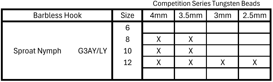 Finatec Competition Series tungsten beads will fit on this hook in the following sizes: