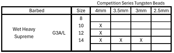 Finatec Competition Series tungsten beads will fit on this hook in the following sizes:
